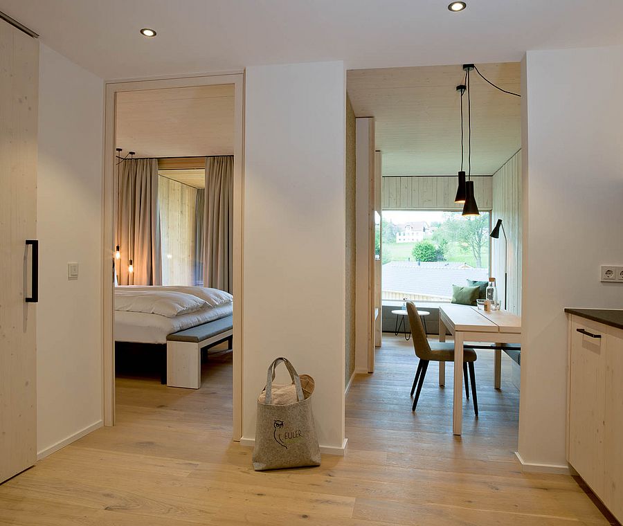 Alle Juniorsuiten verfügen über ein komfortables King-Size-Bett, eine gemütliche Essecke sowie eine praktische Teeküche (ohne Herd) mit Teestation. Für zusätzliche Flexibilität sorgt eine ausziehbare Couch.