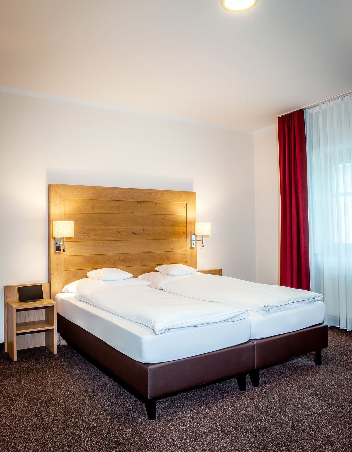 Auf 21 m² genießen Sie hier Ruhe und einen herrlichen Blick ins Grüne. Unsere Doppelzimmer Panorama Gartenglück im Stammhaus überzeugen mit Holzboden, warmen Farben und moderner Ausstattung.