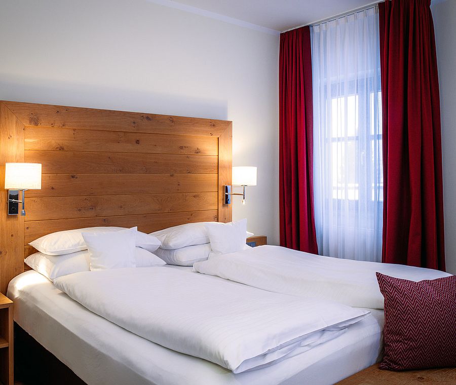 Auf 20 m² erwartet Sie angenehme Ruhe und ein Blick ins Grüne. Unsere Doppelzimmer Standard Gartenglück im Euler Stammhaus sind der ideale Rückzugsort für zwei.