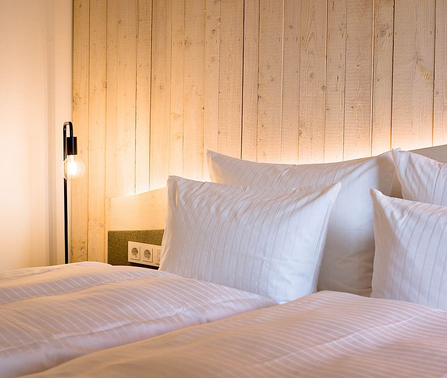Freiraum mit Stil. Unsere Suite Seeblick Wiese im Naturhotel bietet auf 65m² Platz für bis zu 3 Personen und überzeugt mit einem zweiten Schlafzimmer. Helle Farben, viel Holz und der Blick über die Wiese bis zum See schaffen ein Gefühl von Ruhe und Leichtigkeit.