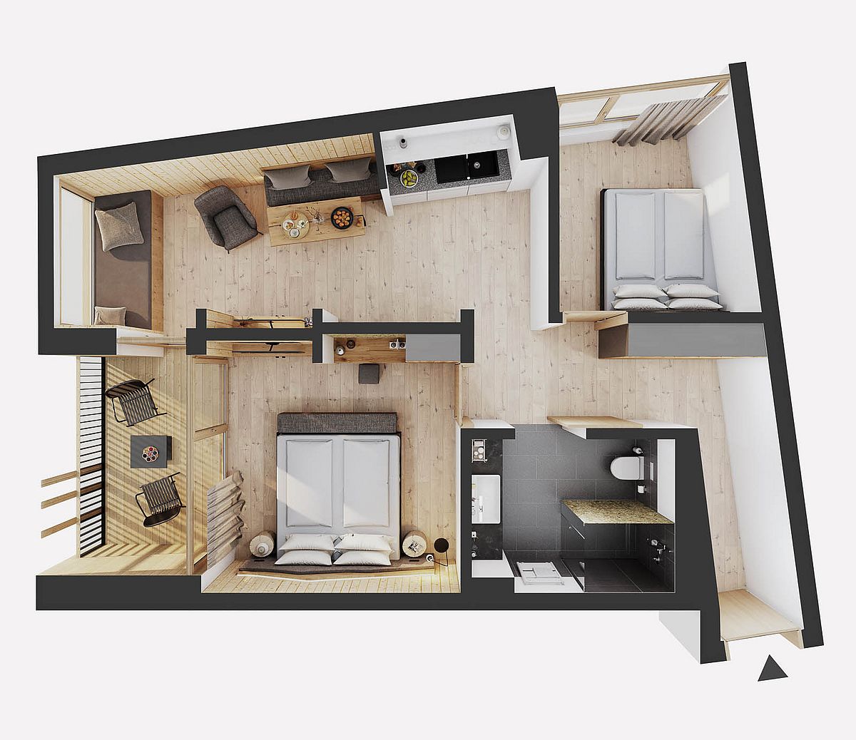 Eine gemütliche Essecke, die praktische Teeküche (ohne Herd) mit Teestation, die inkludierte Erstbefüllung der Minibar sowie eine private Loggia mit Sitzgelegenheit sorgen für Komfort und entspannte Wohlfühlmomente ab der ersten Minute.