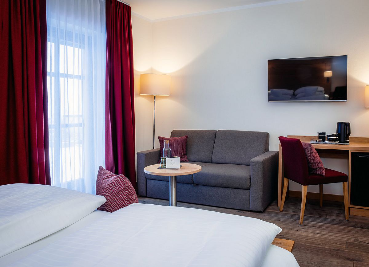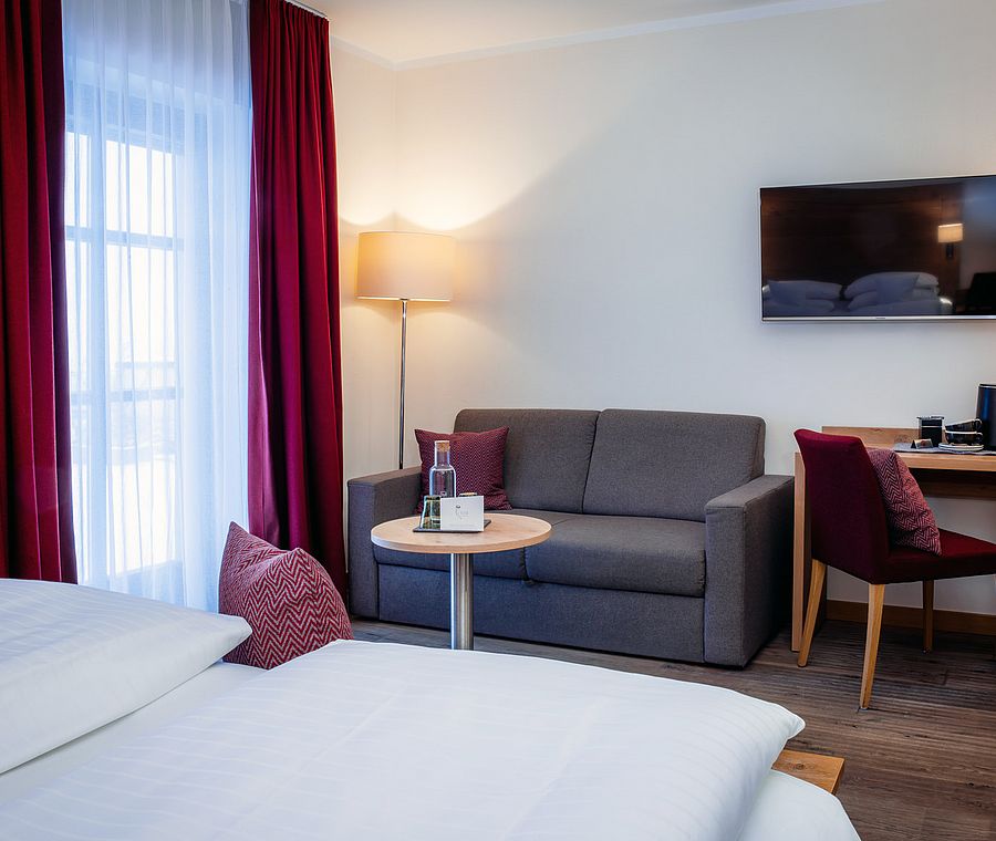 Im Stammhaus gelegen und mit herrlichem Blick ins Grüne bieten unsere Doppelzimmer Superior Panorama Gartenglück auf 27 m² viel Raum zum Entspannen. Das Highlight: begehbare Kleiderschrank! Ideal für alle, die gerne großzügig wohnen.